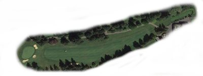 Tight teeing area on this dogleg right, approach shot is to an uphill green. Hit a long iron or hybrid at the fairway bunker for the safest tee shot.