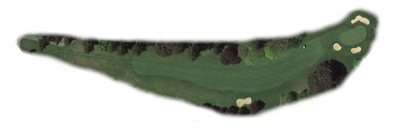 This hole plays against the contours and is difficult to line up from the tee. Bunkers to the right are penal. Uphill semi-blind second shot with a 2-tiered green.